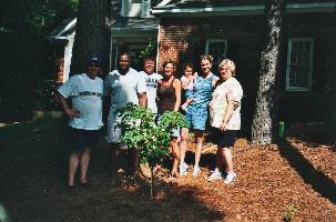 There have been so many expressions of support for us and dedications to Ben in different forms that it's difficult to know where to start saying thank you. Even through we haven't responded to each message please know that the have all been read (and re-read) and appreciated. We've had many cards of sympathy from friends near and far, many emails as well as the messages left on the guestbook on Ben's page at this site. There have been many donations to Hospice of Wake County and NTSAD in Ben's name for which we are very grateful. We were particularly touched by our neighbors planting a Dogwood tree in our front yard (see picture below) which will produce a blue flower every April. They are also going to build a park bench in his memory down at our local pond.